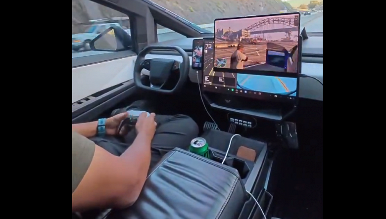 Поводом стал опубликованный в соцсети ролик, в котором водитель Cybertruck играет в Grand Theft Auto V, активировав режим FSD (Full Self-Driving). При этом изображение выводится на планшет, закрепленный поверх экрана Tesla.