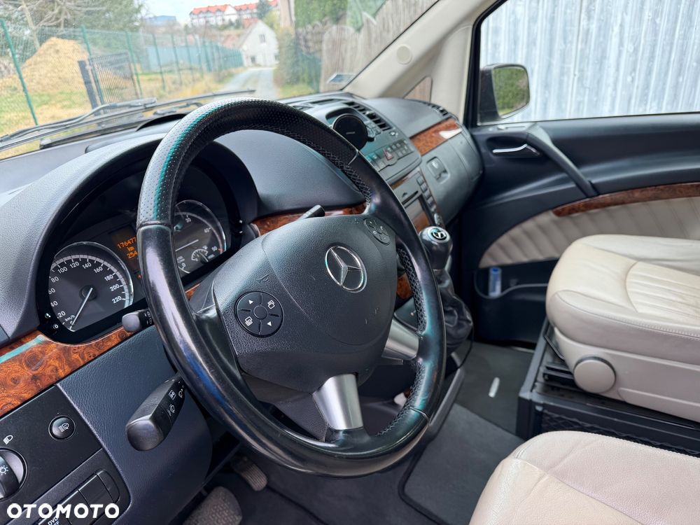 Auto bardzo ładne. Bogata wersja. Mercedes-Benz Viano 3.0 CDI Ambiente, 2013 rok, automat, diesel. Przebieg 176000 km. 7 miejsc, skórzana tapicerka, klimatyzacja, elektryczne szyby przód i tył, podgrzewane i elektrycznie sterowane lusterka, tempomat, wielofunkcyjna kierownica, system ESP, ABS, poduszki powietrzne (kierowca, pasażer, boczne), reflektory bi-xenonowe, spryskiwacze reflektorów, zawieszenie hydropneumatyczne, średnie spalanie 8,6 l/100km. Samochód z polskiego salonu. Zapraszam na stronę na Facebooku Wertauta.