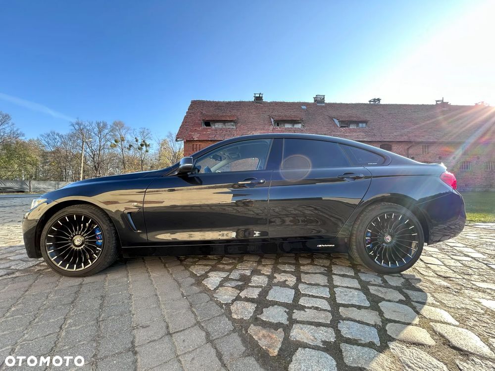 Sprzedam piękne BMW F36 serii 4 w wersji 420i Gran Coupe xDrive - napęd na 4 koła (4x4) Sport z M - pakietem wizualnym, ze skórzaną tapicerką,