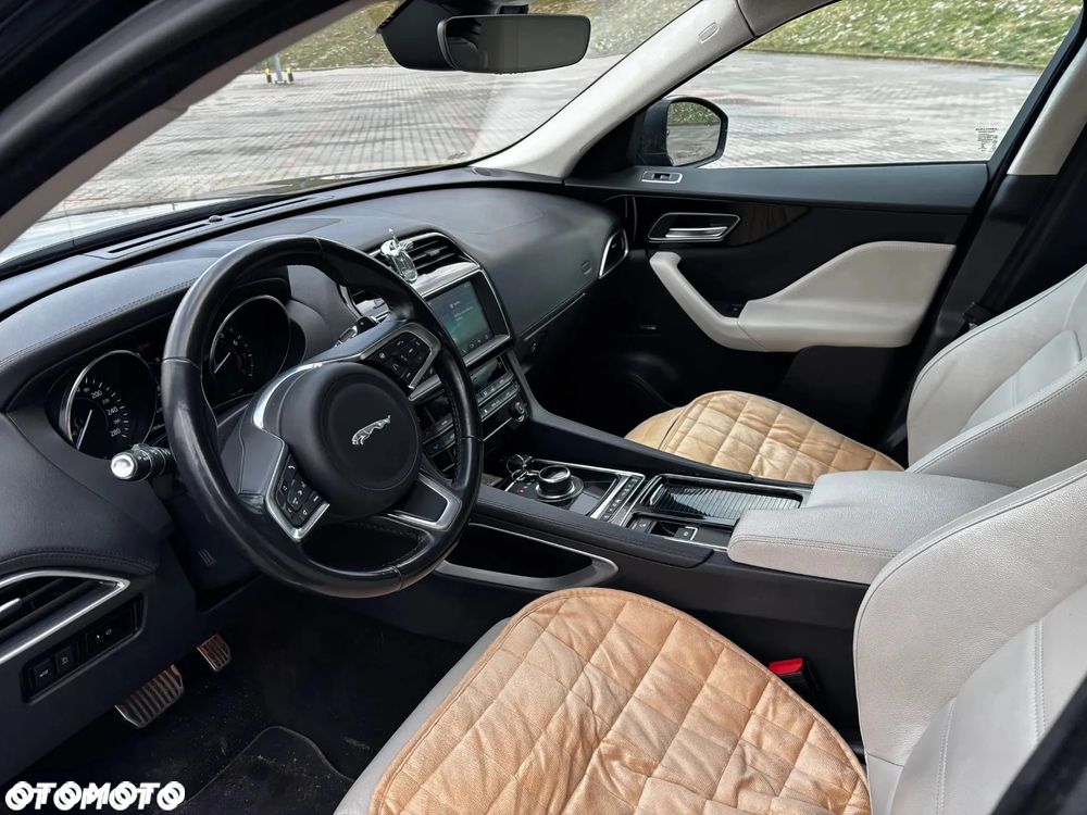 Dzień dobry, na sprzedaż widoczny na zdjęciach piękny Jaguar F-Pace w kolorze głębokiej czerni oraz śnieżnobiałym środkiem. Samochód z niezawodnym dwulitrowym silnikiem benzynowym generującym 250 koni mechanicznych oraz napędem na cztery koła.