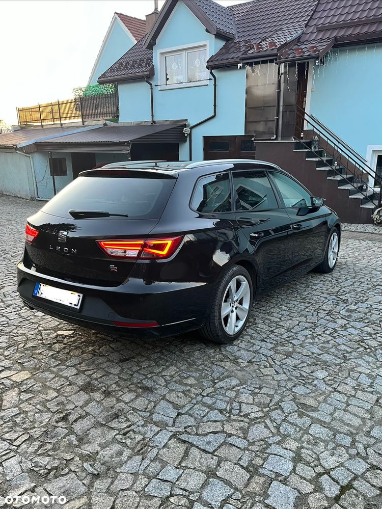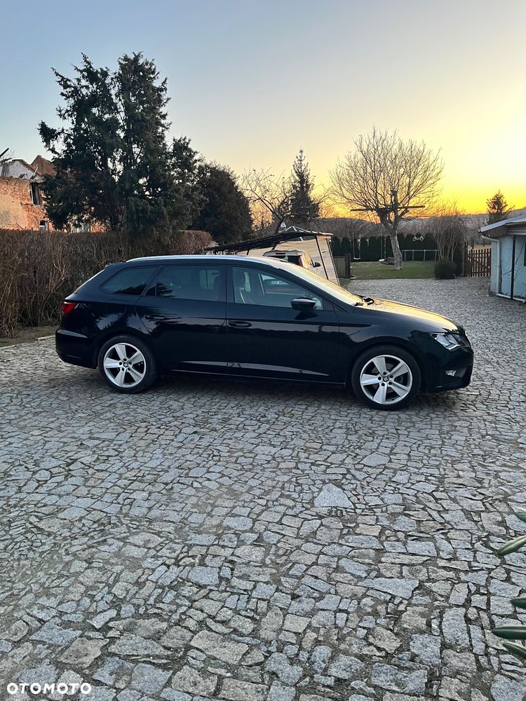 Seat Leon Kombi z 2015 roku, fabryczna wersja FR, z bardzo bogatym wyposażeniem.