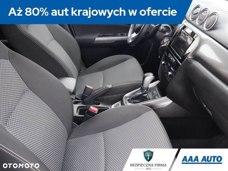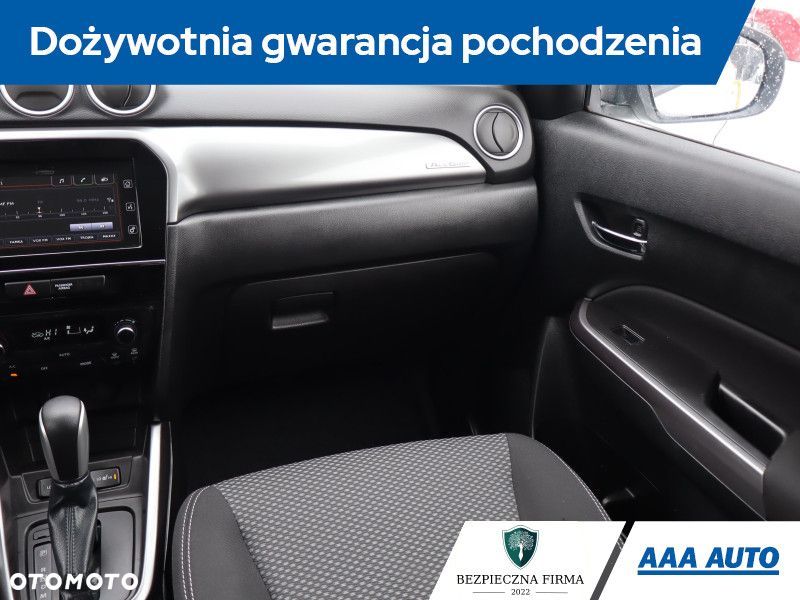 To Suzuki Vitara pochodzi z Polski i jest wyposażone w efektywny silnik benzynowy 1.4 BoosterJet o pojemności 1373 cm3 i mocy 140 KM. Pojazd posiada książkę serwisową, co jest dodatkowym atutem. Vitara oferuje automatyczną klimatyzację, która zapewnia komfort termiczny. Fotele są podgrzewane, co zwiększa wygodę w chłodne dni. Kierownica jest skórzana i wielofunkcyjna, a łopatki zmiany biegów ułatwiają obsługę automatycznej skrzyni. Czujnik martwego pola oraz system stabilizacji toru jazdy wspierają bezpieczeństwo. Dodatkowo, samochód posiada Bluetooth, Android Auto i Apple CarPlay, co umożliwia łatwą integrację z urządzeniami mobilnymi.