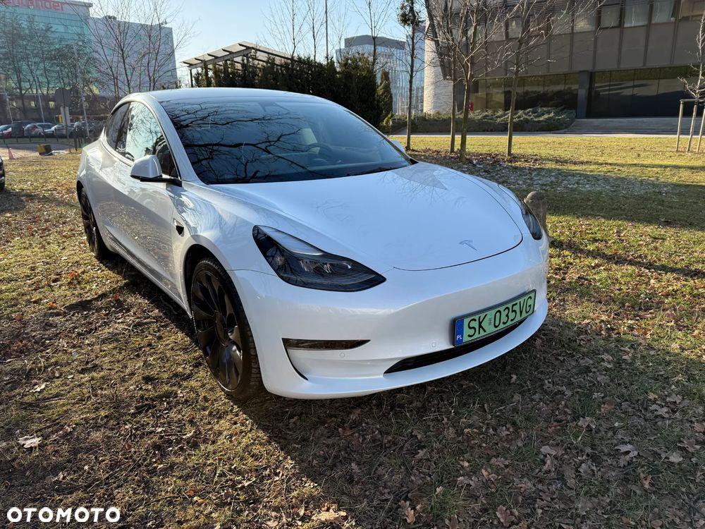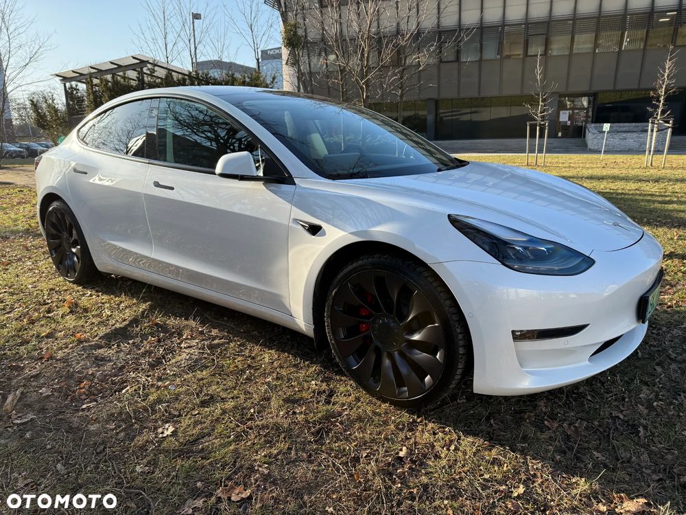 Tesla 3 - wersja performance (około 500 KM i 3 s do setki) z roku 2021 (polift) z salonu w Polsce (po leasing).