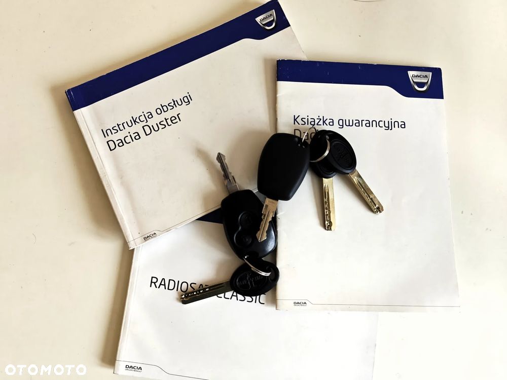 Wyposażenie tego egzemplarza Dacia Duster Laureate z pewnością umili każdą podróż. Znajdziemy tu między innymi systemy poprawiające bezpieczeństwo takie jak ABS i ESP, mocowania fotelików ISOFIX, poduszki powietrzne oraz blokadę skrzyni biegów. Dla komfortu kierowcy i pasażerów przewidziano klimatyzację manualną, elektryczne lusterka i szyby, a także wielofunkcyjną kierownicę ułatwiającą obsługę wielu funkcji bez odrywania wzroku od drogi. System audio z radiem fabrycznym, odtwarzaczem CD i MP3 oraz wejściem AUX pozwoli cieszyć się ulubioną muzyką. Z tyłu zamontowano czujnik parkowania, który znacząco ułatwi manewrowanie w ciasnych miejscach.