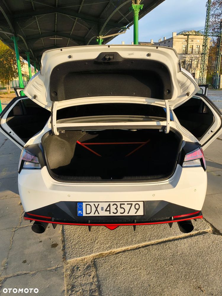 Główną zaletą Elantry N jest jej konfigurowalność dająca możliwość błyskawicznie przejść z komfortowego auta w sportową bestię. Dodatkowo użytkownik może stworzyć własne ustawienia odpowiadające za twardość zawieszenia, moc silnika, pracę skrzyni biegów oraz głośność układu wydechowego (moim zdaniem jedno z lepiej brzmiących r4 na rynku). We wnętrzu samochodu jest bardzo wiele "smaczków" takich jak: podświetlane logo N w kubełkowych fotelach, sportowa kierownica z wieloma predefiniowanymi przyciskami, tarcze zegarów dedykowane dla smochodów N, aplikacja N na wyświetlaczu centralnym pozwalająca obserwować wszystkie parametry pojazdu, czy seryjna rozpórka w bagażniku.