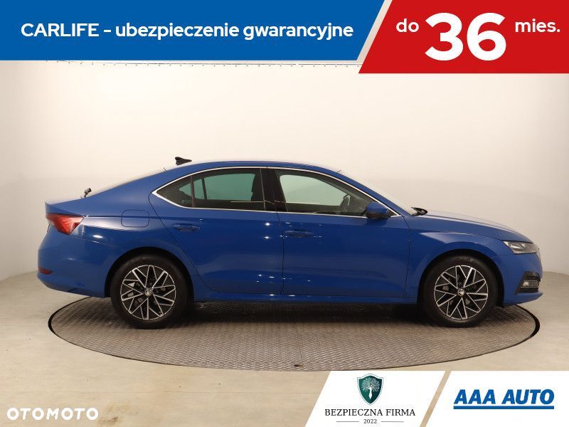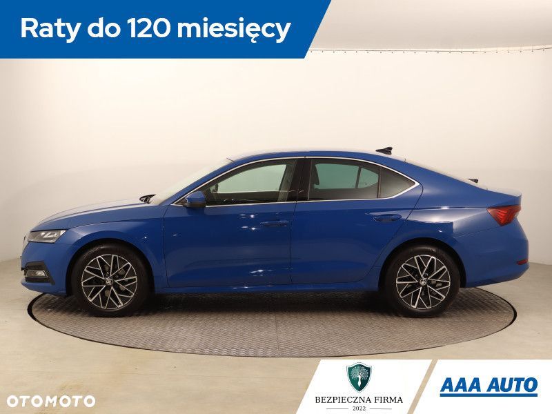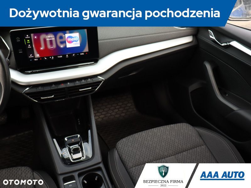 Ta Škoda Octavia pochodzi z Polski i jest wyposażona w efektywny silnik benzynowy 1.5 TSI e-tec o pojemności 1498 cm3 i mocy 149 KM. Pojazd posiada książkę serwisową, a także istnieje możliwość odliczenia podatku VAT. Samochód jest po pierwszym właścicielu i posiada automatyczną skrzynię biegów. W wyposażeniu znajdziemy wirtualny kokpit oraz przednie światła LED, które poprawiają widoczność. Fotele są podgrzewane, a klimatyzacja automatyczna, co zwiększa komfort podróży. Kierownica jest skórzana, wielofunkcyjna i wyposażona w łopatki do zmiany biegów, co ułatwia obsługę pojazdu.