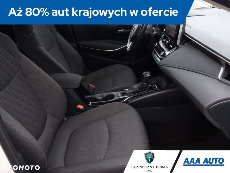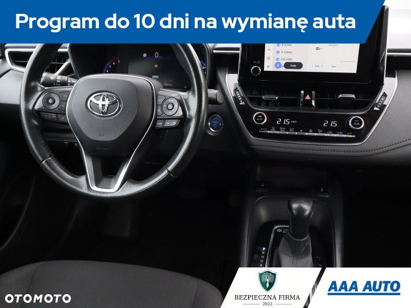 Ta Toyota Corolla pochodzi z Polski i jest wyposażona w hybrydowy silnik benzynowy 1.8 o pojemności 1798 cm3 i mocy 122 KM. Samochód posiada automatyczną skrzynię biegów. Istnieje możliwość odliczenia podatku VAT. Wyposażenie obejmuje przednie światła LED, które poprawiają widoczność na drodze. Fotele są podgrzewane, co zwiększa komfort w chłodniejsze dni. Klimatyzacja jest automatyczna, a kierownica skórzana i wielofunkcyjna, co ułatwia obsługę pojazdu. Dodatkowo, samochód posiada system stabilizacji toru jazdy, który wspiera bezpieczeństwo.