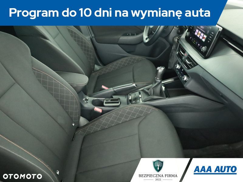 Ta Škoda Scala pochodzi z Polski i jest po pierwszym właścicielu. Wyposażona jest w efektywny silnik benzynowy 1.0 TSI o pojemności 999 cm3 i mocy 110 KM. Istnieje możliwość odliczenia podatku VAT. W zakresie wyposażenia Škoda Scala oferuje automatyczną klimatyzację, tylne czujniki parkowania oraz systemy Android Auto, Apple CarPlay i MirrorLink. Kierownica jest skórzana i wielofunkcyjna, co ułatwia obsługę funkcji pojazdu. Dodatkowo, samochód posiada Bluetooth oraz system sterowania głosem, co zwiększa wygodę użytkowania.