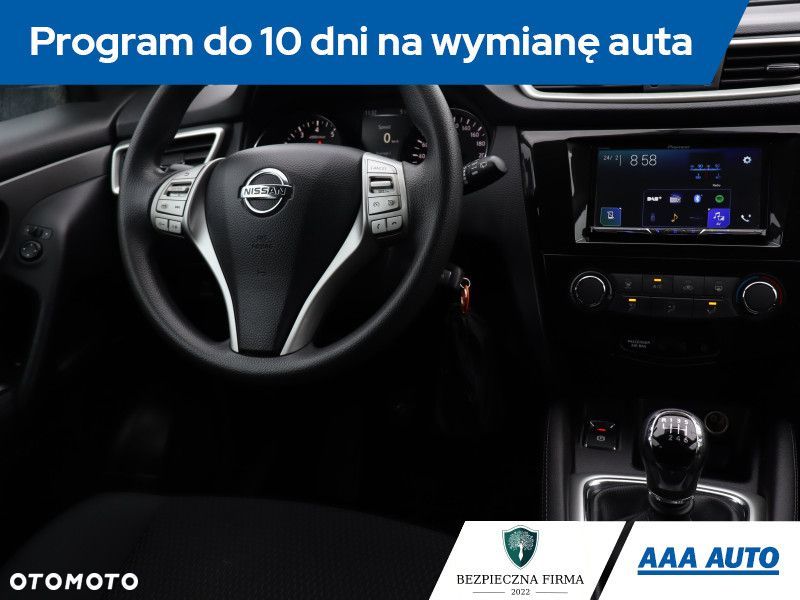 Ten Nissan Qashqai jest wyposażony w efektywny silnik benzynowy 1.2 DIG-T o pojemności 1197 cm3 i mocy 115 KM. Samochód posiada klimatyzację, co zwiększa komfort podróży. Wyposażenie obejmuje Android Auto oraz Bluetooth, co ułatwia integrację urządzeń mobilnych. Kierownica wielofunkcyjna pozwala na wygodną obsługę funkcji pojazdu. Dodatkowo, auto posiada asystenta podjazdu, automatyczne światła dzienne oraz dzienne światła LED, co poprawia bezpieczeństwo i widoczność.