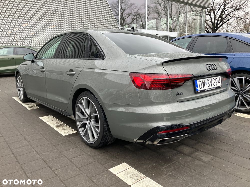 Mam do sprzedania prywatny samochód Audi A4 45 TFSI mHEV Quattro S line S tronic 195 kW (265 KM) z pakietem Competition w kolorze szary Chronos metalik. Rok produkcji 2023 r. , przebieg 69850 km (w użytkowaniu). Samochód zadbany w bardzo dobrym stanie. W przeszłości mała parkingowa rysa z przodu (naprawa wykonana w ASO Audi Wrocław). Zdjęcie załączone poniżej.