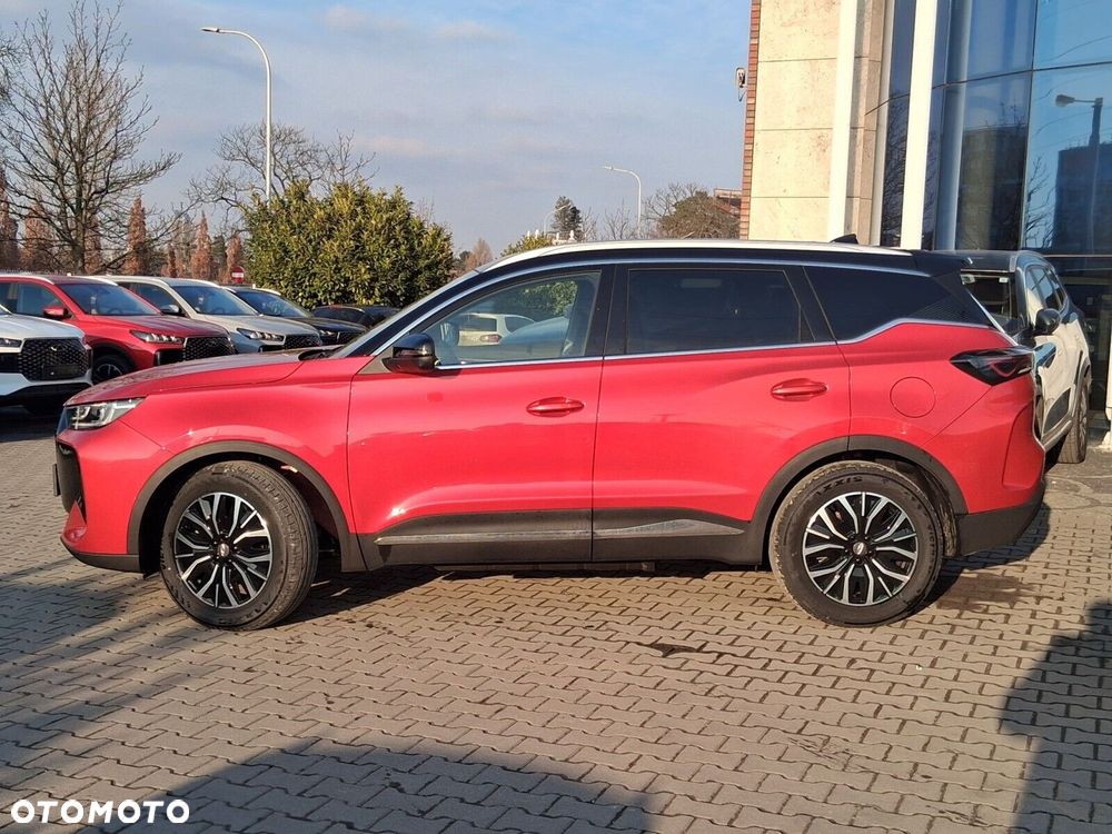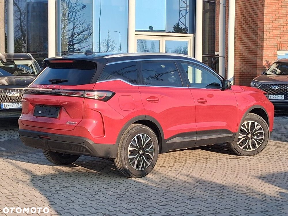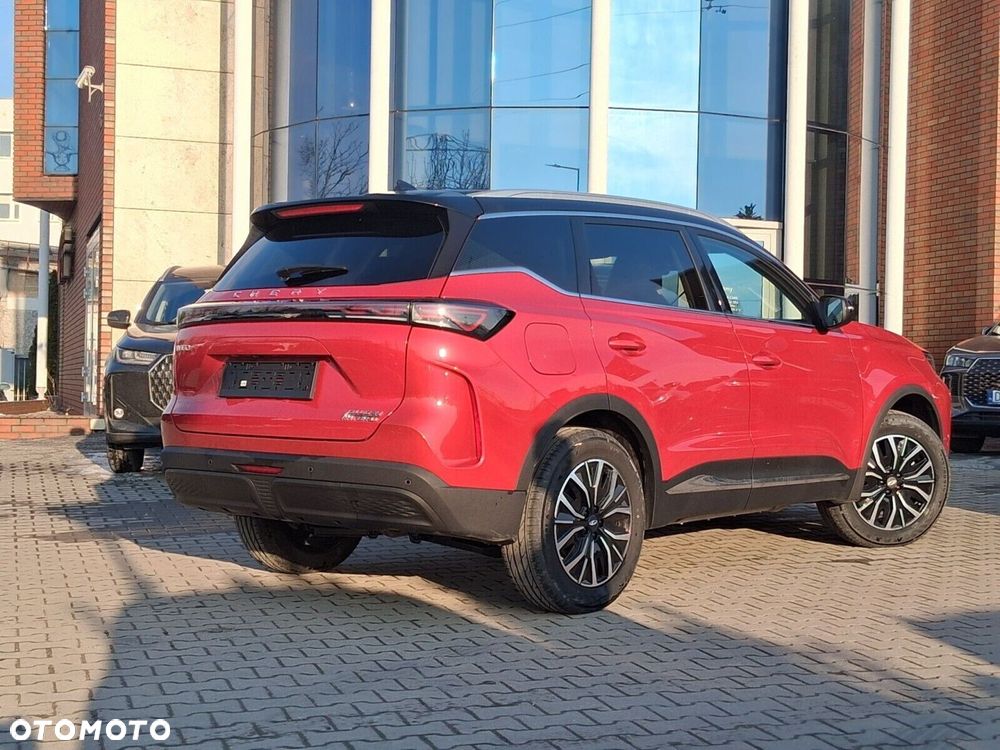 - Osiągi i napęd: Automatyczna skrzynia 1DHT, napęd na przednie koła (FWD), przyspieszenie 0-100 km/h w 8,2 s, prędkość max. 180 km/h. Tryby jazdy: Eco, Normal, Sport. Funkcja V2L (Vehicle-to-Load) o mocy 3,3 kW – Twój Tiggo staje się mobilną elektrownią do zasilania urządzeń zewnętrznych!