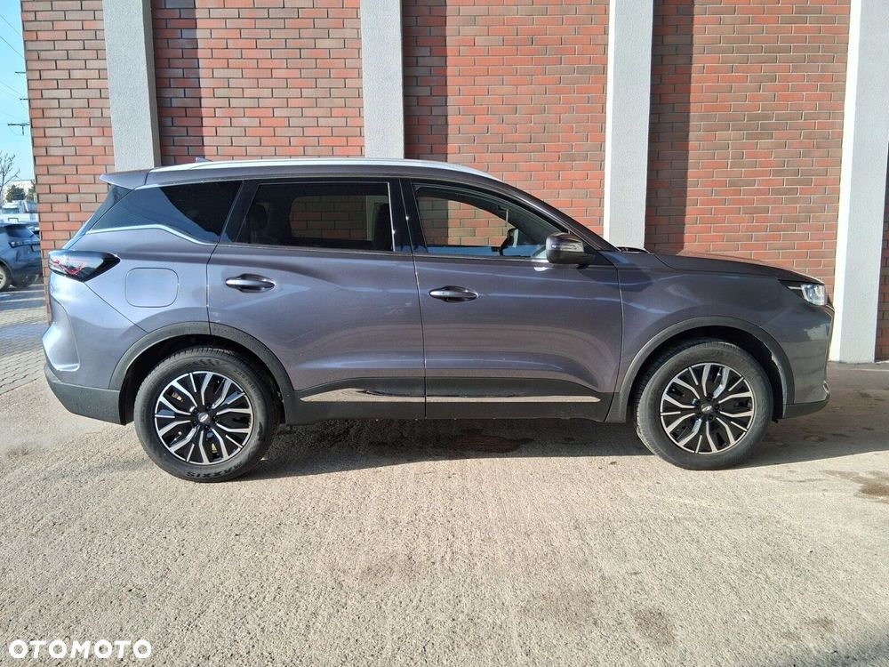 - Osiągi i napęd: Automatyczna skrzynia 1DHT, napęd na przednie koła (FWD), przyspieszenie 0-100 km/h w 8,2 s, prędkość max. 180 km/h. Tryby jazdy: Eco, Normal, Sport. Funkcja V2L (Vehicle-to-Load) o mocy 3,3 kW – Twój Tiggo staje się mobilną elektrownią do zasilania urządzeń zewnętrznych!