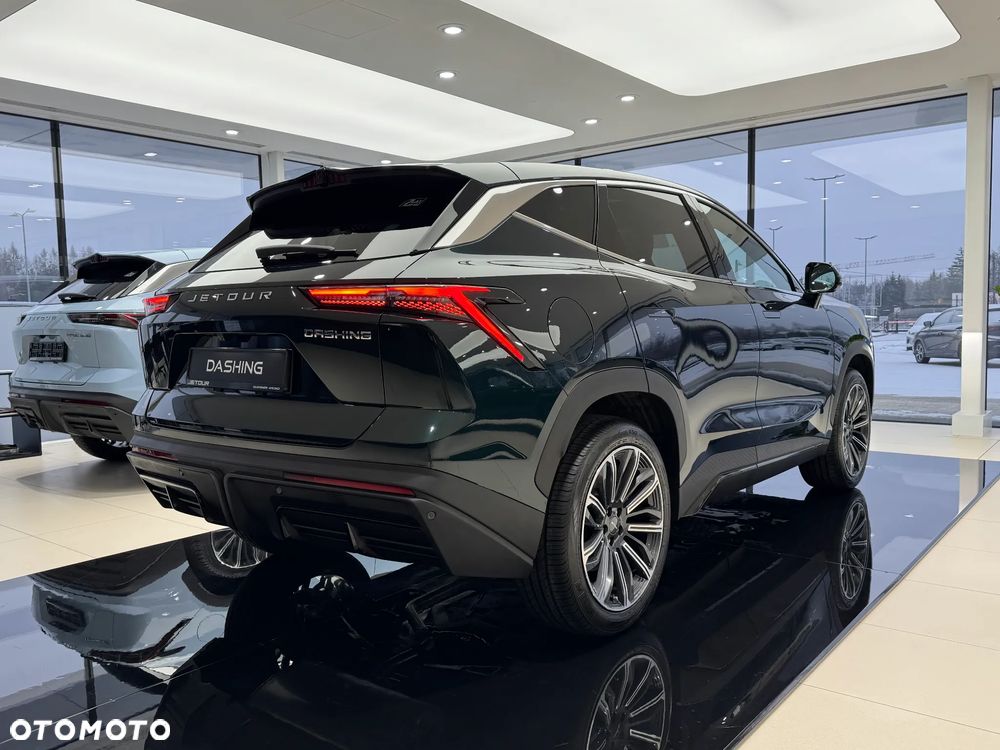 JETOUR Dashing 1.5T 6DCT to nowoczesny, 5-miejscowy SUV o dynamicznej sylwetce i przestronnym wnętrzu. Idealny zarówno do codziennej jazdy miejskiej, jak i dłuższych tras. Automatyczna skrzynia 6DCT zapewnia płynną zmianę biegów, a turbodoładowany silnik 1.5T oferuje bardzo dobry kompromis między osiągami a ekonomią.