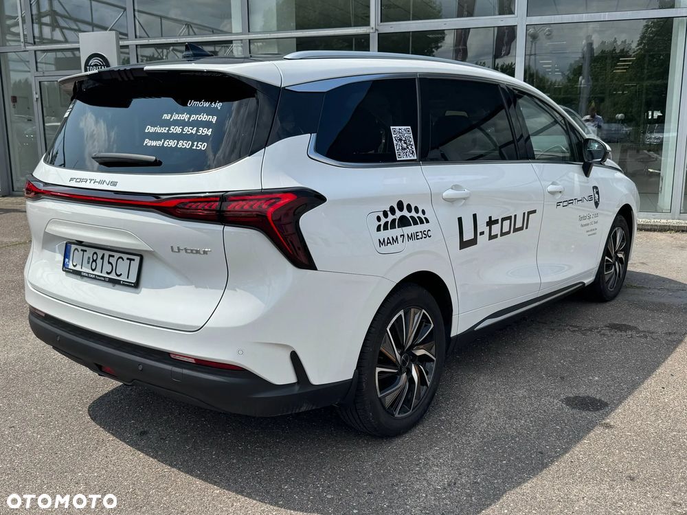 Forthing U-Tour to nowoczesny samochód, który doskonale sprawdzi się jako pojazd rodzinny. Oferuje przestronne wnętrze, wyjątkowy komfort jazdy, zaawansowane technologie oraz bezpieczeństwo podczas podróży. Spełni oczekiwania kierowcy, jak i pasażerów.