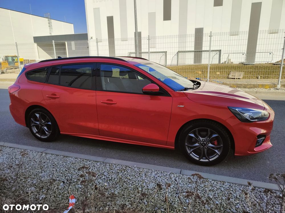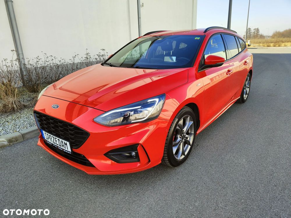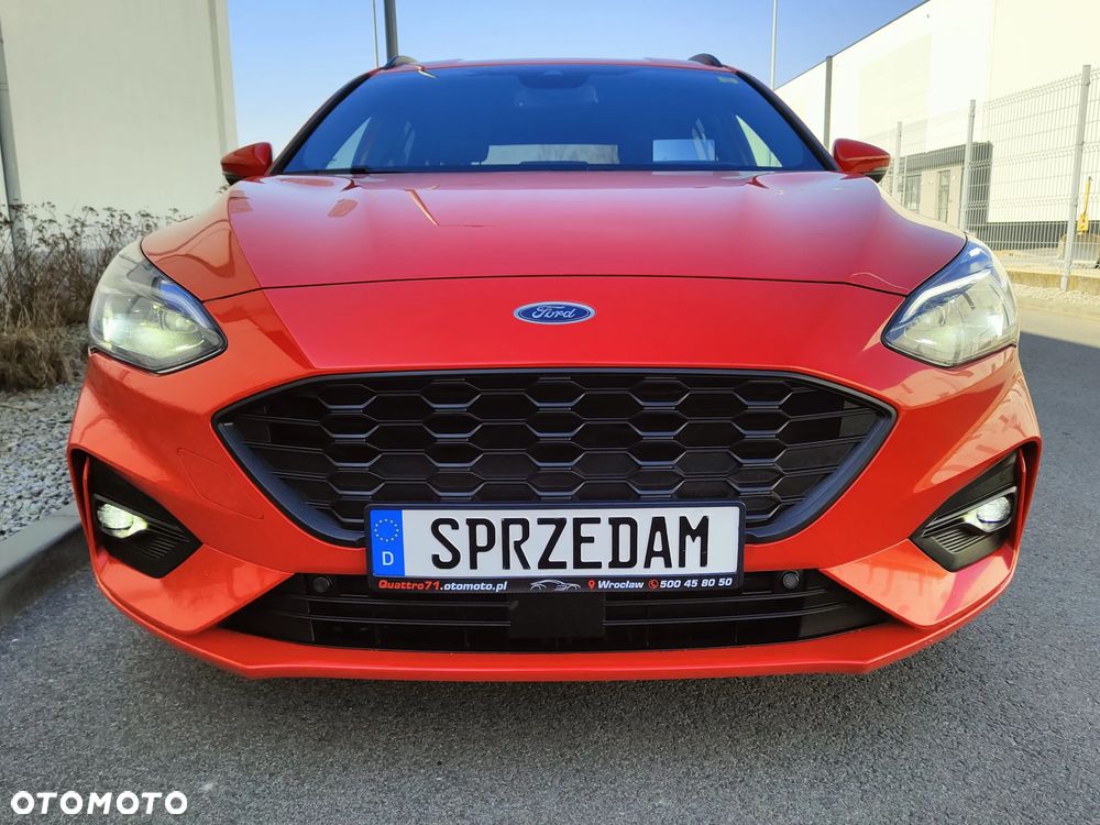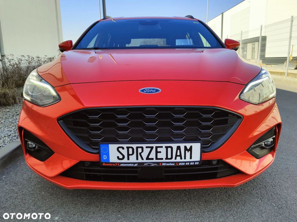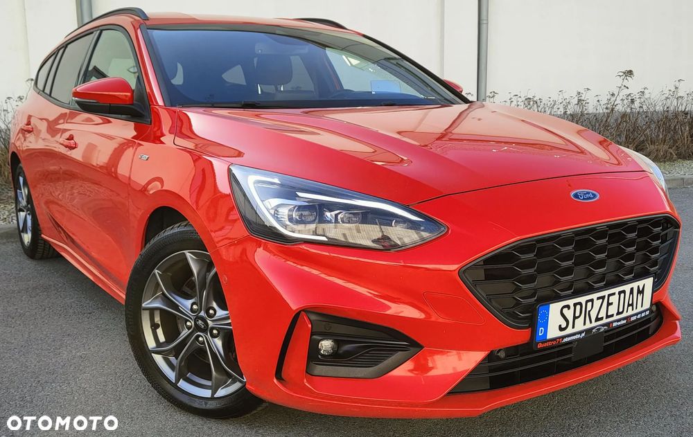 Na sprzedaż piękny Ford Focus mk4 Kombi w bardzo bogatej wersji wyposażenia ST Line (trudno taką znaleźć z rynku krajowego). Dynamiczny i przede wszystkim oszczędny silnik 2.0 TDCi Euro6 o mocy 150KM połączony z automatyczną 8-biegową skrzynią biegów (+ manetki F1) - śr. spalanie 4,9l/100km - zasięg na pełnym zbiorniku ok1000km. Auto z 2021r - 1-wsza rej. 18.01.2021r. Auto użytkowane od nowości przez 1-właściciela i świeżo sprowadzone do Polski. Piękny lakier czerwony metallic + brokat - nie poobijany, nie porysowany auto posiada minimalne ślady użytkowania. Samochód jest BEZWYPADKOWY - wszystkie szyby oraz lampy oryginalne Ford - mogę udostępnić profesjonalny miernik grubości lakieru. Wnętrze auta czyste, zadbane - nie palono w nim papierosów. Podsufitka w nienagannym stanie. Samochód był regularnie serwisowany co przekłada się na jego stan techniczny - auto jest w BDB stanie. Możliwość sprawdzenia auta w dowolnym serwisie, warsztacie, stacji kontroli pojazdów. Silnik / Skrzynia biegów pracują bardzo dobrze.