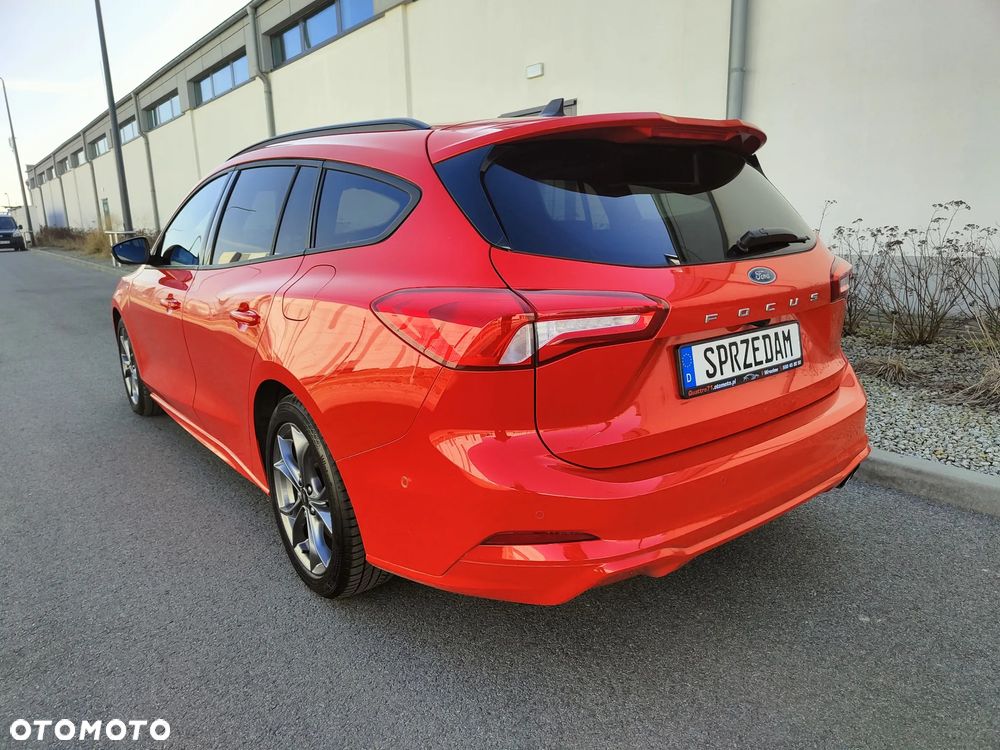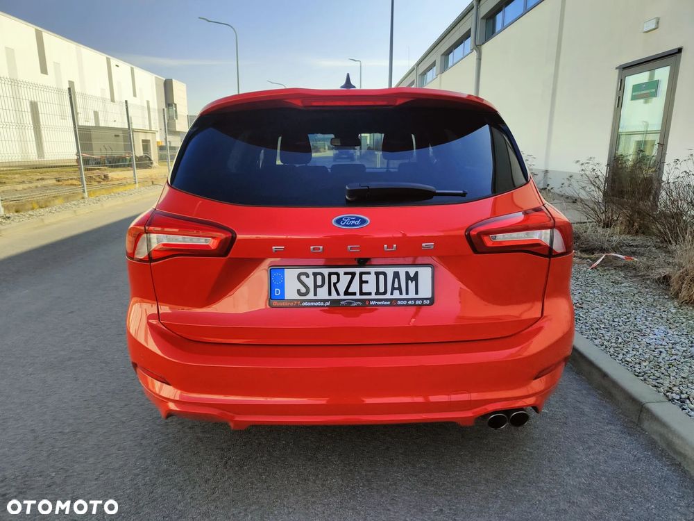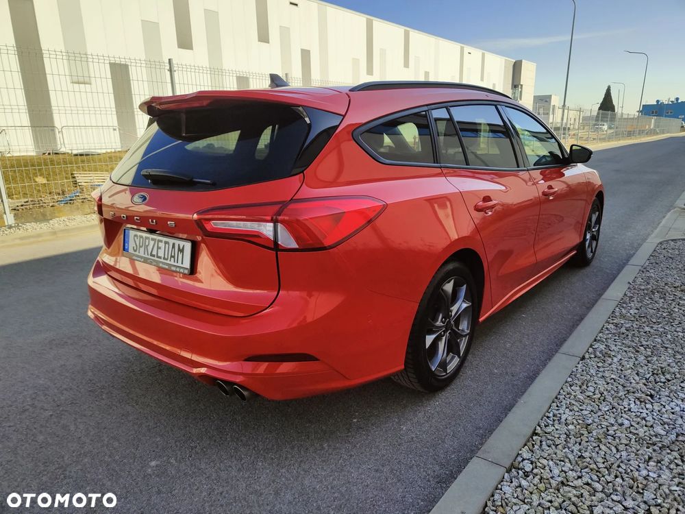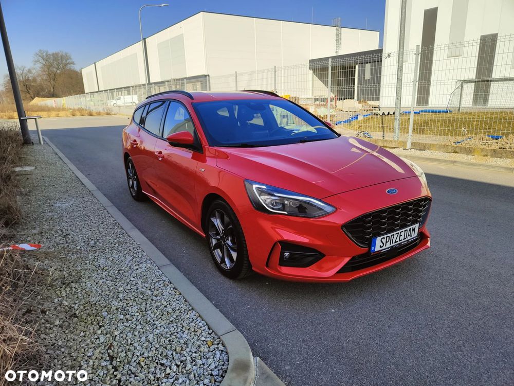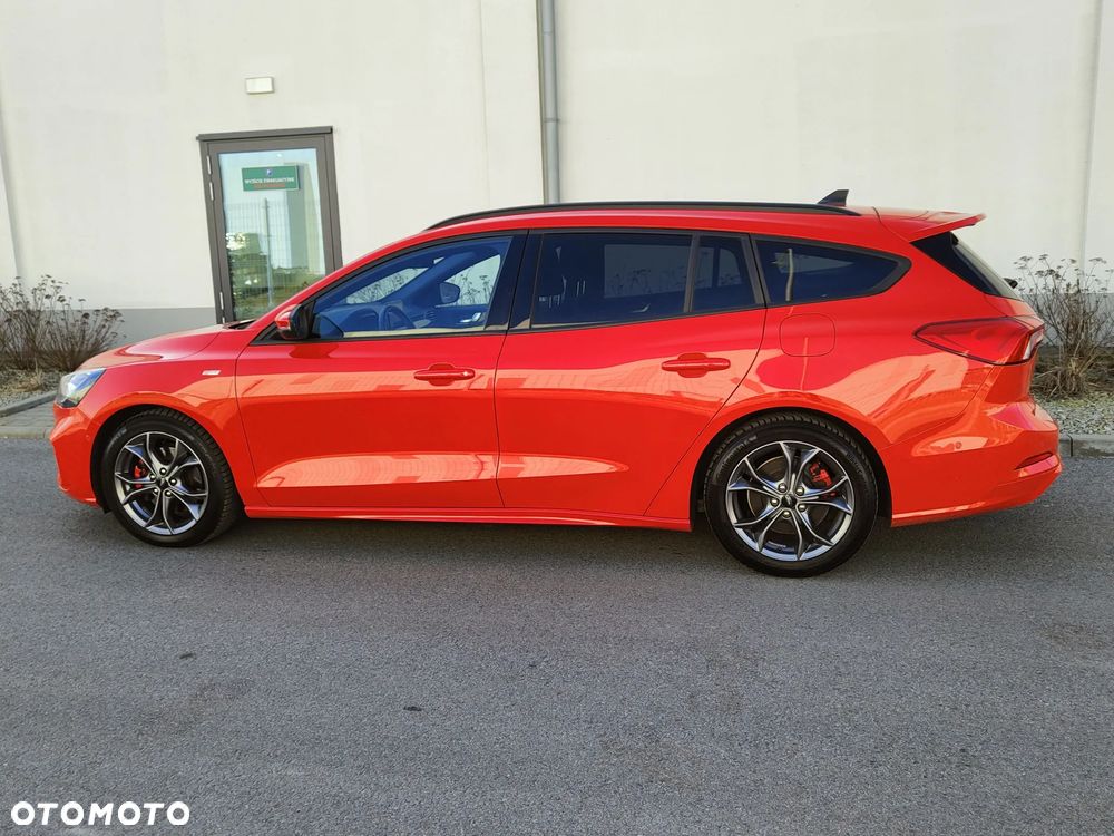 Na sprzedaż piękny Ford Focus mk4 Kombi w bardzo bogatej wersji wyposażenia ST Line (trudno taką znaleźć z rynku krajowego). Dynamiczny i przede wszystkim oszczędny silnik 2.0 TDCi Euro6 o mocy 150KM połączony z automatyczną 8-biegową skrzynią biegów (+ manetki F1) - śr. spalanie 4,9l/100km - zasięg na pełnym zbiorniku ok1000km. Auto z 2021r - 1-wsza rej. 18.01.2021r. Auto użytkowane od nowości przez 1-właściciela i świeżo sprowadzone do Polski. Piękny lakier czerwony metallic + brokat - nie poobijany, nie porysowany auto posiada minimalne ślady użytkowania. Samochód jest BEZWYPADKOWY - wszystkie szyby oraz lampy oryginalne Ford - mogę udostępnić profesjonalny miernik grubości lakieru. Wnętrze auta czyste, zadbane - nie palono w nim papierosów. Podsufitka w nienagannym stanie. Samochód był regularnie serwisowany co przekłada się na jego stan techniczny - auto jest w BDB stanie. Możliwość sprawdzenia auta w dowolnym serwisie, warsztacie, stacji kontroli pojazdów. Silnik / Skrzynia biegów pracują bardzo dobrze.