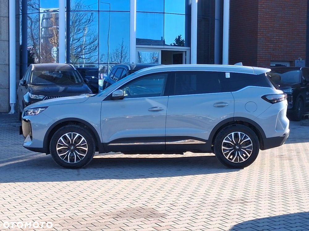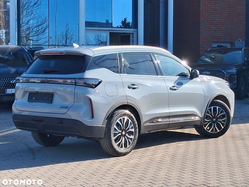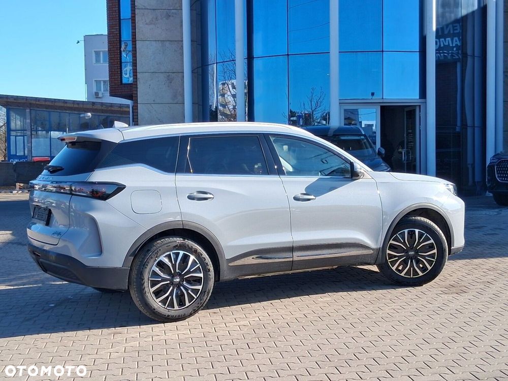 - Osiągi i napęd: Automatyczna skrzynia 1DHT, napęd na przednie koła (FWD), przyspieszenie 0-100 km/h w 8,2 s, prędkość max. 180 km/h. Tryby jazdy: Eco, Normal, Sport. Funkcja V2L (Vehicle-to-Load) o mocy 3,3 kW – Twój Tiggo staje się mobilną elektrownią do zasilania urządzeń zewnętrznych!
