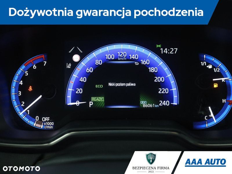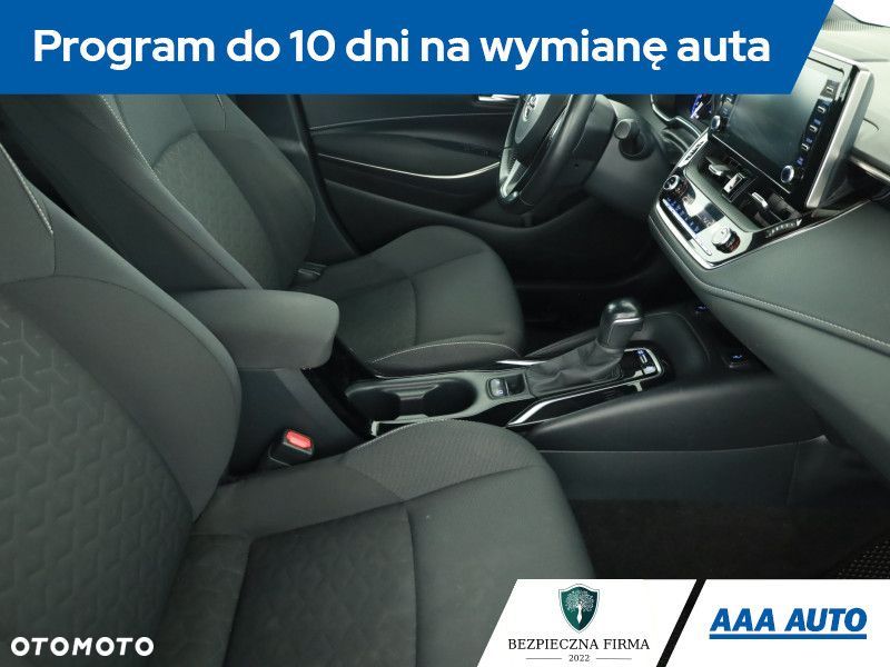 Ta Toyota Corolla pochodzi z Polski i jest wyposażona w hybrydowy silnik benzynowy 1.8 o pojemności 1798 cm3 i mocy 122 KM. Pojazd posiada elektroniczną książkę serwisową, co jest dodatkowym atutem. Automatyczna skrzynia biegów zapewnia płynną zmianę przełożeń. Corolla oferuje wirtualny kokpit, który dostarcza kierowcy czytelnych informacji. Przednie światła LED poprawiają widoczność i bezpieczeństwo. Fotele są podgrzewane, co zwiększa komfort w chłodne dni. Klimatyzacja jest automatyczna, a kierownica skórzana i wielofunkcyjna, co ułatwia obsługę funkcji pojazdu.