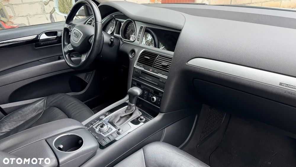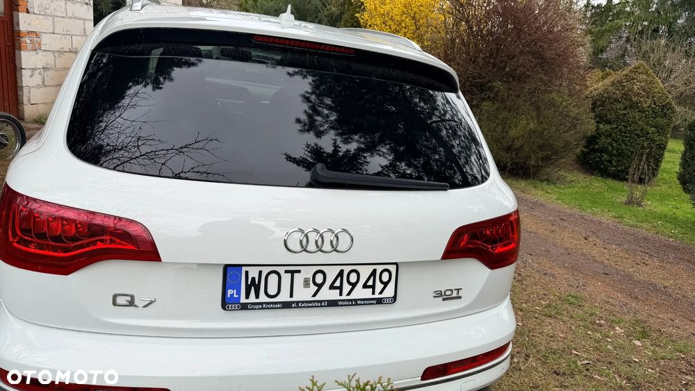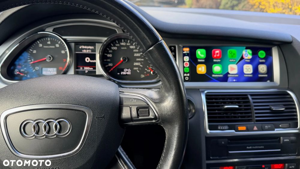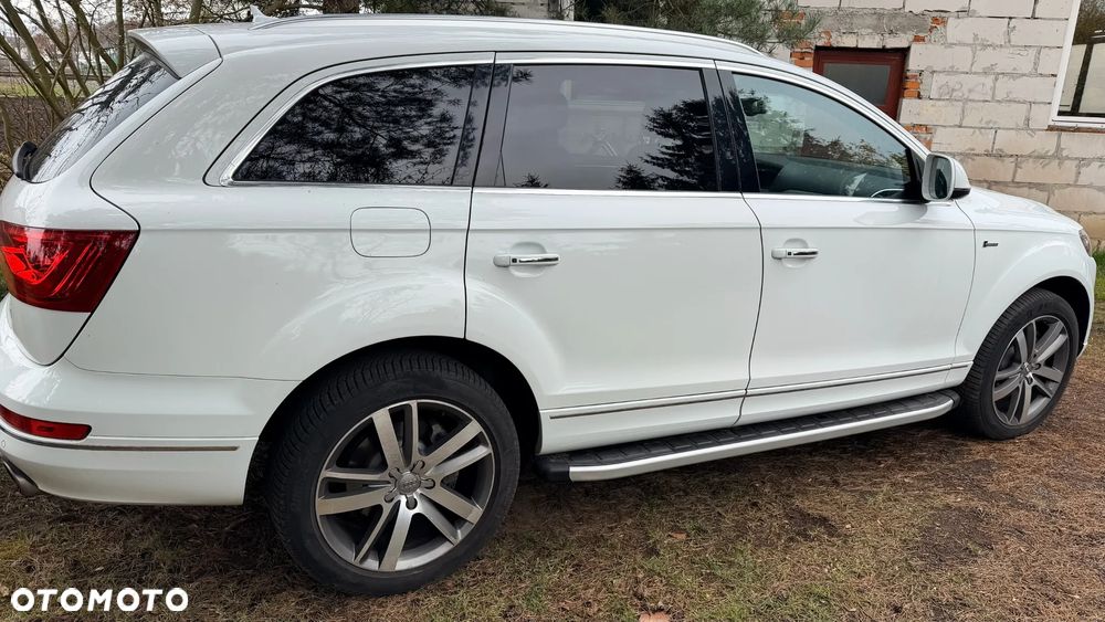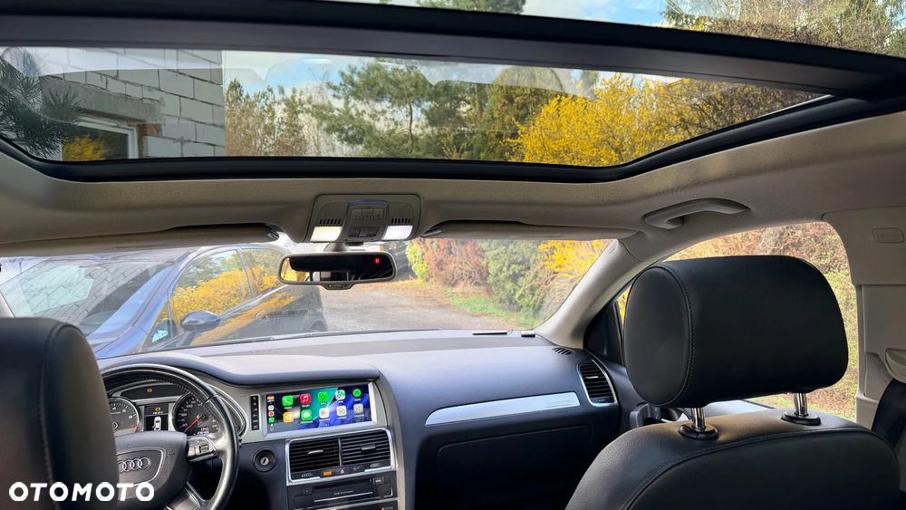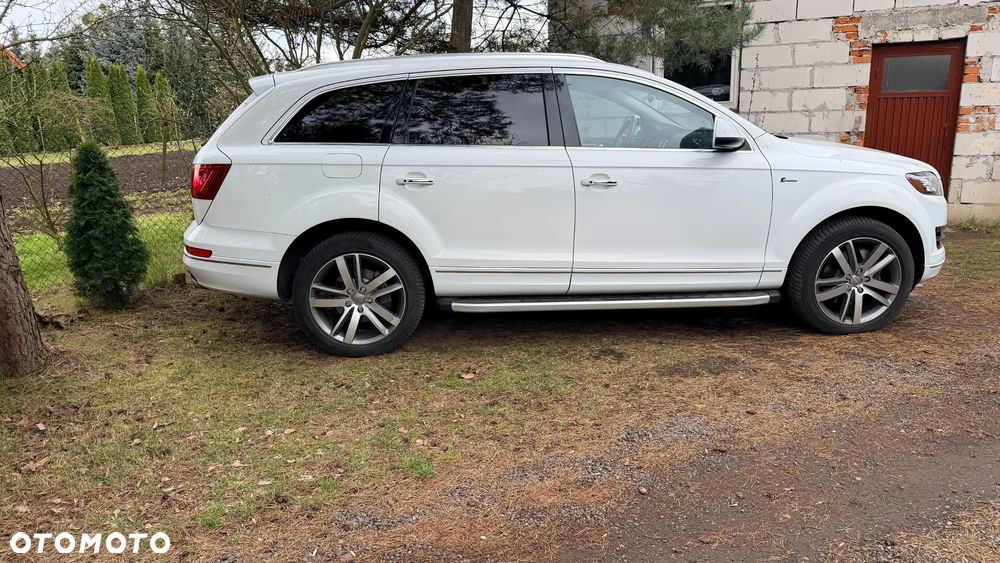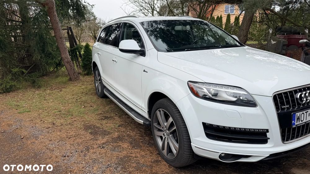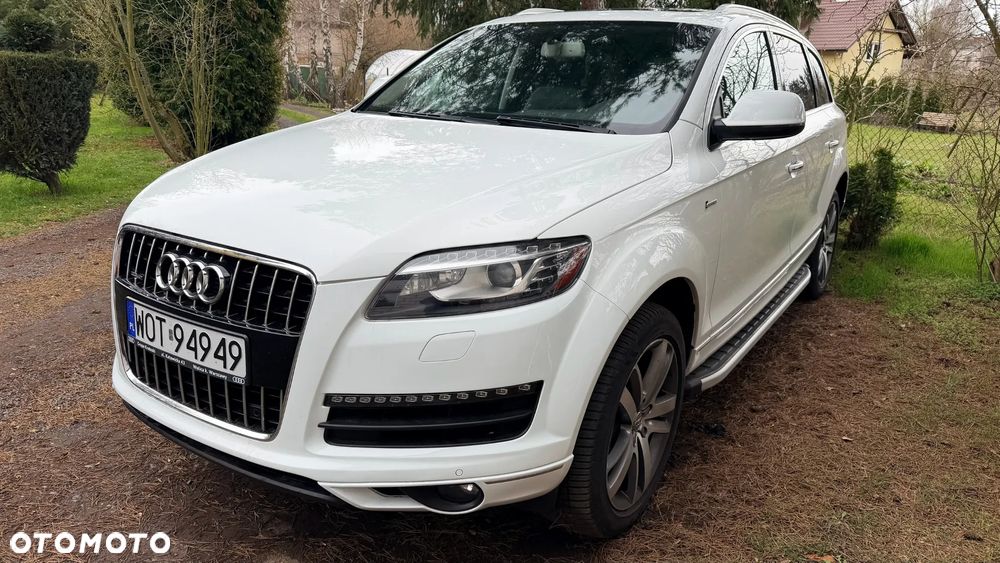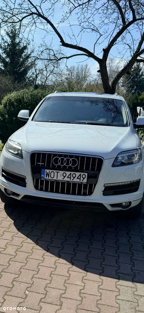 Audi Q7 w bardzo dobrym stanie, zadbany egzemplarz z bogatym wyposażeniem. Samochód z 2014 roku, benzyna, automat, napęd quattro, 7 miejsc. Kolor biały perłowy, felgi aluminiowe 20”. Przebieg 235 000 km. Po wymianie rozrządu i odmy. Wnętrze skórzane, klimatyzacja automatyczna, fotele elektryczne z pamięcią i podgrzewaniem, system nagłośnienia, nawigacja, Apple CarPlay, kamera cofania, czujniki parkowania przód/tył, tempomat, system bezkluczykowy, szklany dach, światła bi-xenon, LED, czujnik deszczu, asystent martwego pola, elektrycznie składane lusterka, przyciemniane szyby tylne, wielofunkcyjna kierownica, pełen pakiet systemów bezpieczeństwa. Opony wielosezonowe. Auto serwisowane, gotowe do jazdy. Dwa kluczuki. Więcej informacji udzielę telefonicznie.